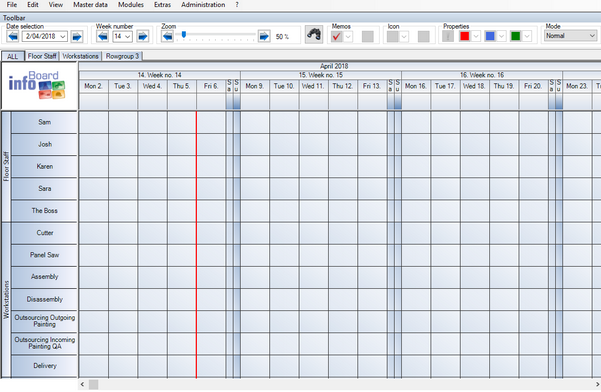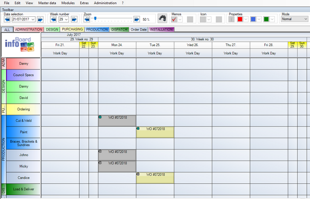 Staffing can be included in planning board - assigned to production scheduling tasks, business operations (e.g. outdoor sales) or planned leave/not available for work.