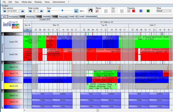 Boost productivity while cutting costs with intelligent scheduling that identifies conflicts, controls job flow, and ensures material availability. infoBoard seamlessly integrates maintenance, leave, and training commitments while adapting instantly to production changes.